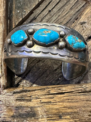 Authentic Old Pawn jewelry that has a natural gray patina, indicating age. It takes decades for the patina to develop and may appear grayer in dry climates like the southwest. Humidity will add a darker, blacker patina. Patina typically isn’t buffed off in order to preserve its history and value. Made of Sterling Silver. This is vintage jewelry handmade by Native American Indians and is a southwestern and boho fashion