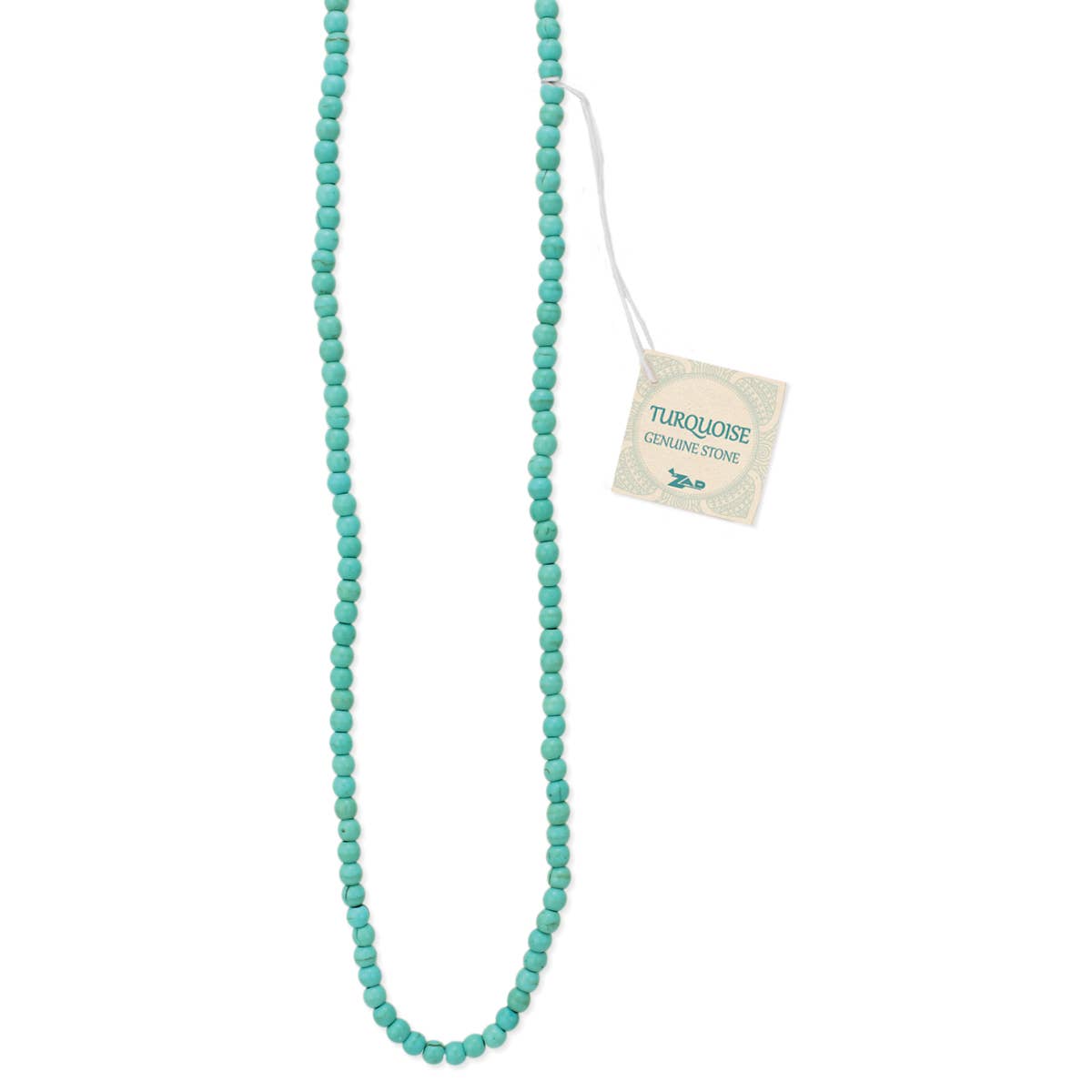Look no further than this turquoise gemstone necklace for an easy natural addition to any look. Vibrant blue green 4mm beads decorate this simple short stone necklace. Wear this basic Turquoise strand necklace for it's beautiful natural tone or it's stone healing properties. * Made in China * Natural turquoise gemstone beads * Short stone necklace great for layered looks * Adjusting links included for comfortable fit * Includes stone specific tag * Dimensions: 16-18" long, 4mm beads * Materials: Genuine Stone, Silver-tone Metal * Closure: Lobster Clasp