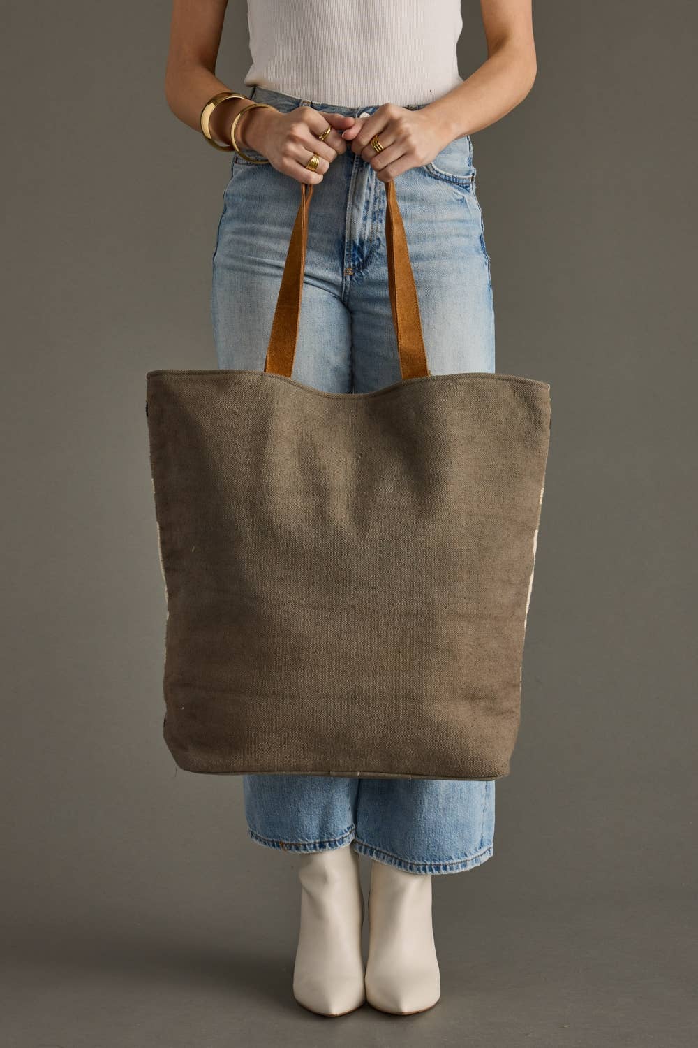 Taupe, cream & tan Aztec tote Taupe pom tassel 17" x 6.5" x 14.5" 100% Cotton